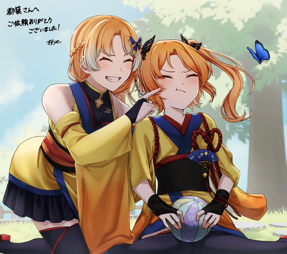 こちらのイラストを描かせていただきました~! 二人ともめちゃくちゃ可愛くて描いてて楽しかったです☺️✨ 余談ですが祈蝶さんは日常的な表情や仕草は若干男性っぽい?くだけた雰囲気で、ふとした笑い方にミカちゃんっぽい愛らしさが出る人かなぁと勝手な解釈をしています😌 #Skeb #依頼受付中 twitter.com/ikudust_sou1/s…