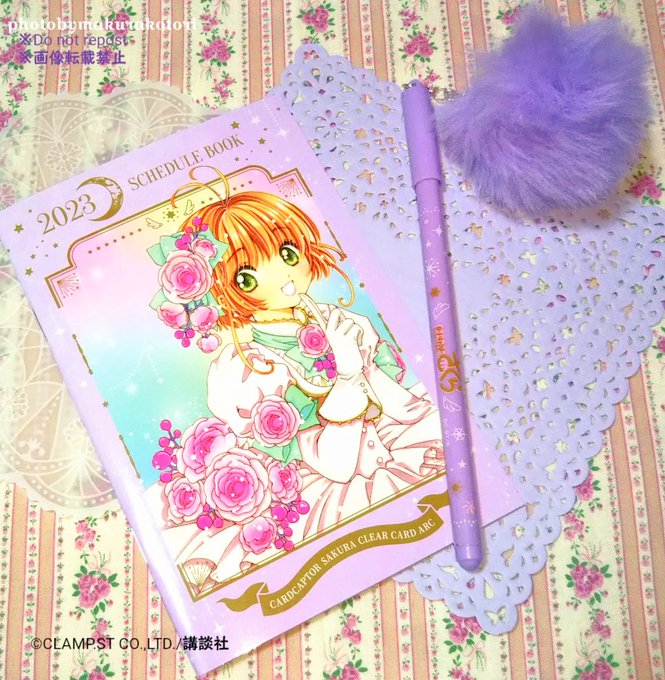 🌸なかよし2023年1月号付録 スケジュール手帳セット🌸 (マンスリー手帳ボール/ボールペン/ファーチャーム) カラーイラストが堪能できて幸せ🌸 色やデザインもかわいくて、キャラクター3人のお誕生日が載ってます✨ ペンにはタイトルロゴ入り。 #カードキャプターさくら #CLAMP #なかよし付録