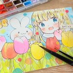 5 13 ありすちゃんのティータイム Arrtx 色鉛筆 126色を使用して描きました! やわらかい塗り心地で、自分好みの色が本当に沢山あって、発色がすごく良いのにびっくりしました。 色見本眺めてるだけでも幸せな気持ちになります・・*✲゚*( *´﹀` )*✲゚* @ArrtxJP #arrtx色鉛筆 23/06/20 16:09