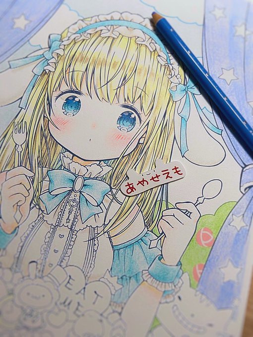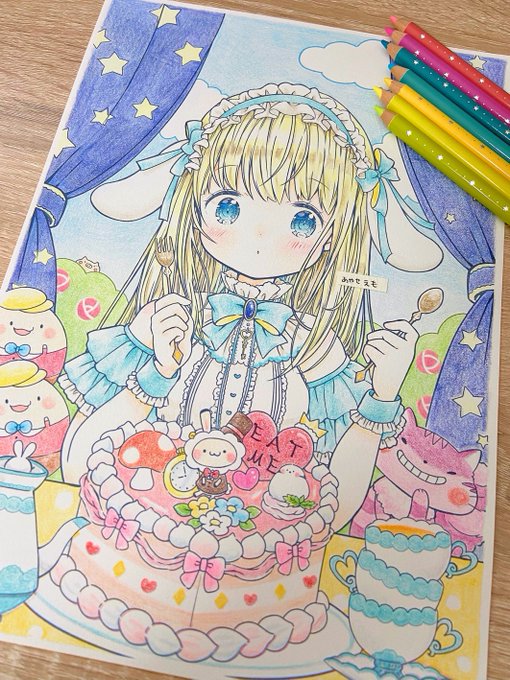 ありすちゃんのティータイム Arrtx 色鉛筆 126色を使用して描きました! やわらかい塗り心地で、自分好みの色が本当に沢山あって、発色がすごく良いのにびっくりしました。 色見本眺めてるだけでも幸せな気持ちになります・・*✲゚*( *´﹀` )*✲゚* @ArrtxJP #arrtx色鉛筆