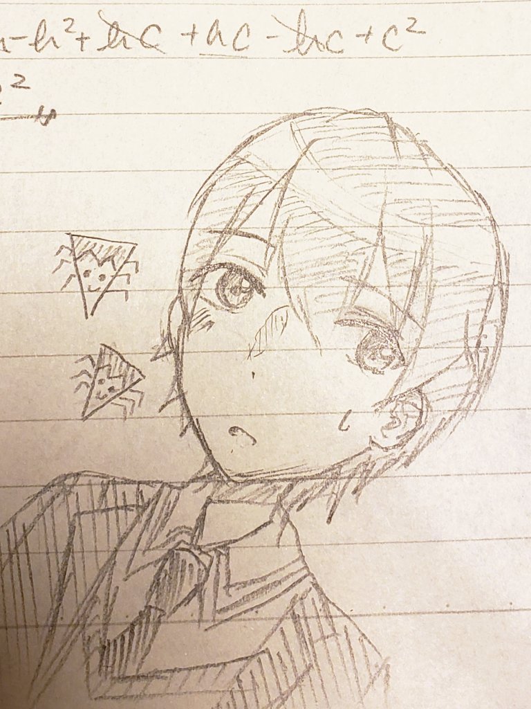 0 11 授業に耐えきれずに描いた落書き( ᐛ ) 実は顎描いたの初めてで下手() #描いた晴 #金剛力也像 22/01/28 17:02