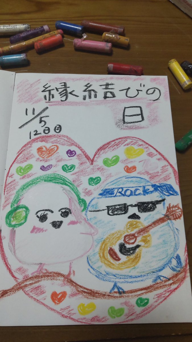 1 15 今日は縁結びの日だそうです! 恋人同士のシマエナガを描きました! 命ある生物の皆様 お幸せに♥️ イラストを見て頂きありがとうございます🙇 #イラスト #イラスト好きさんと繋がりたい #1日1絵 #シマエナガ 22/11/05 22:29