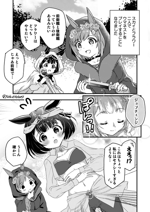 skebでフラウンスがファンタジーゲームの世界に入る漫画を描きました。 skeb.jp/@sakusenbest/w… #ウマ娘 #ウマ娘プリティーダービー #セイウンスカイ #ニシノフラワー