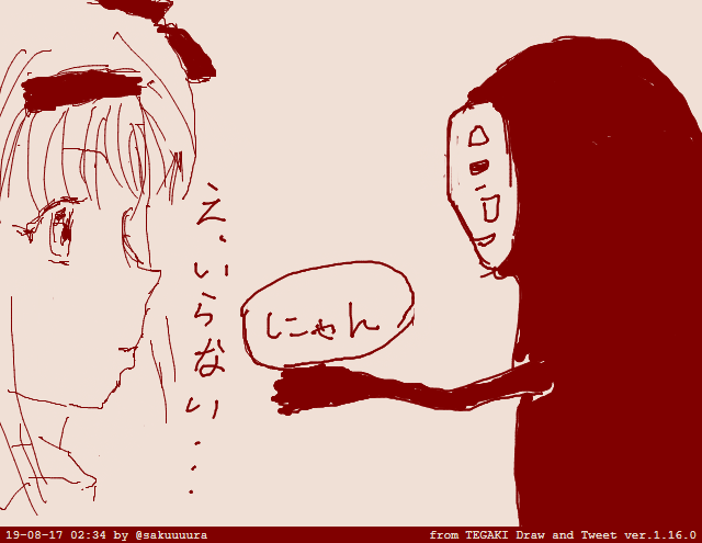 2 7 ピノ様とカオナシ #ピノの自由帳 #tegaki_dt 19/08/17 02:34