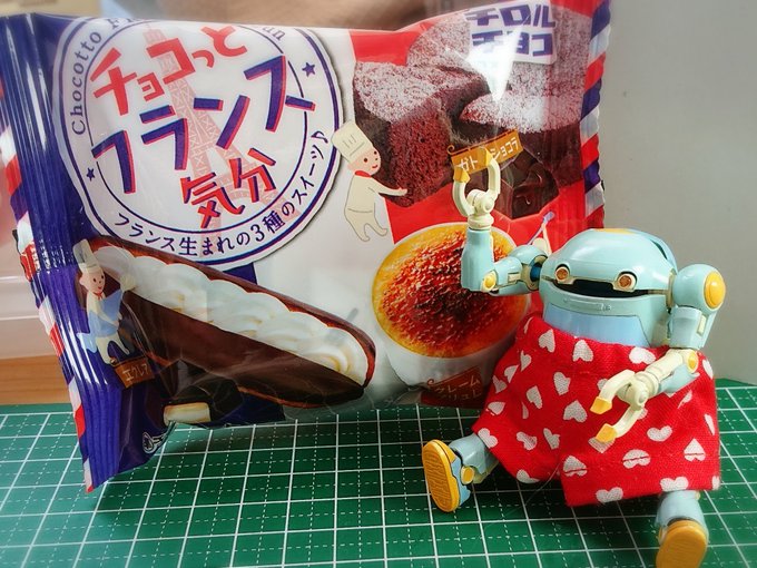 今日ノおやつハ、ふらんす気分デス。 ドレモ美味シイ ケド、くれーむぶりゅれガ一番好キ💕 カリカリ!ウマー!! #メカトロウィーゴ