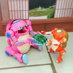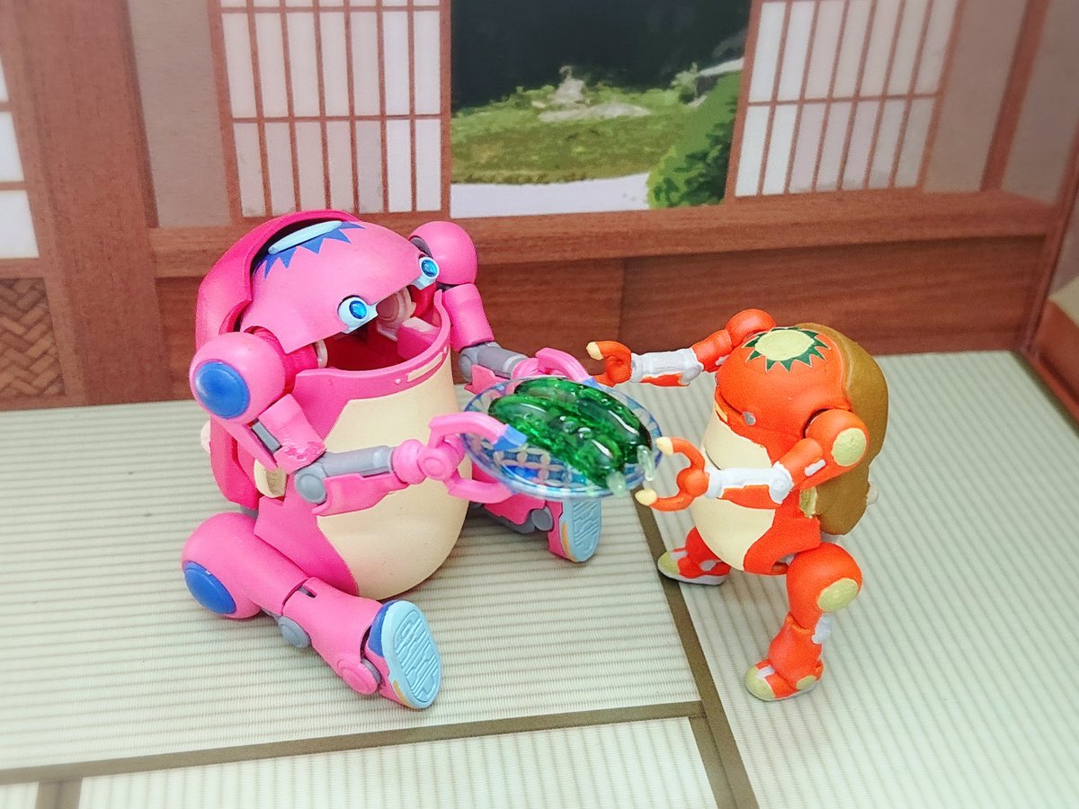 5 27 #これを見た人はオレンジ色の入った画像を貼れ #メカトロウィーゴ ピンク成分多めだけど…w 大好物のキュウリに沸き立つぴんくかっぱさんと、おれんじチビかっぱさん✨ 20/10/15 09:35