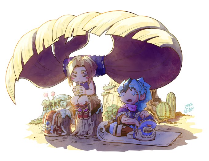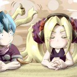 13 53 #過去絵を投げて絵を描いた気になろうキャンペーン 休憩中にノケ様の髪をいじるシーザくん (ドリル) 23/06/05 18:45