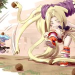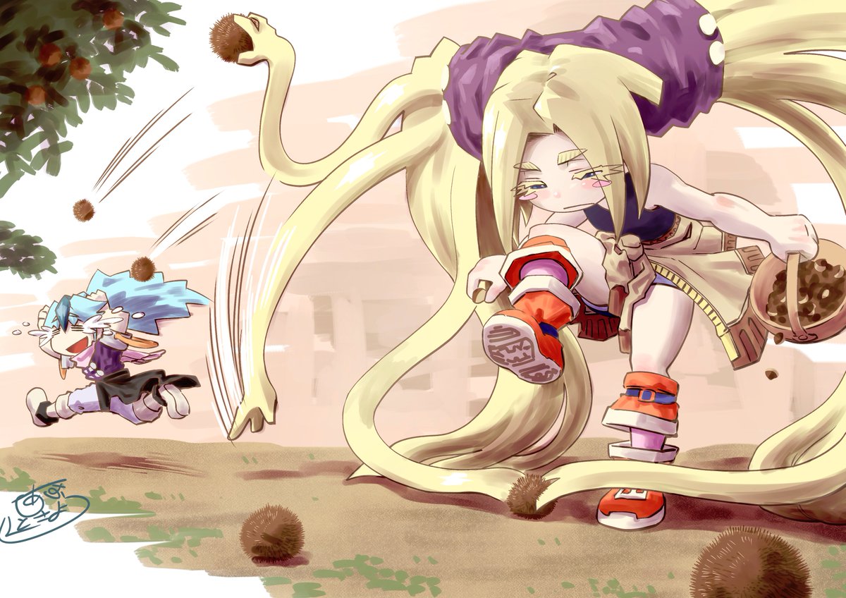 #過去絵を投げて絵を描いた気になろうキャンペーン 休憩中にノケ様の髪をいじるシーザくん (ドリル)