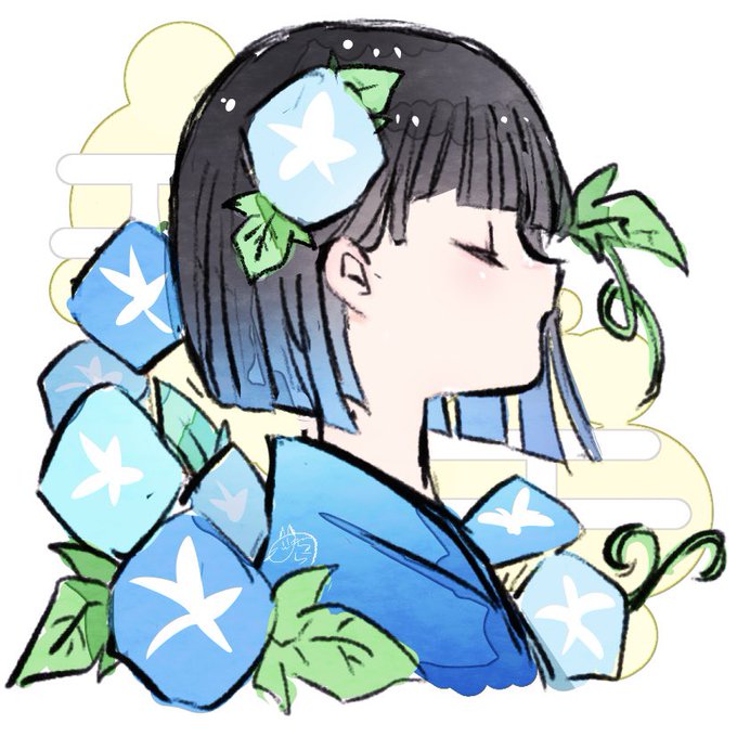 14 70 ささっとオリジナルお絵描き。 着物黒髪少女と朝顔 #MediBang #メディバンペイント 22/08/05 22:50