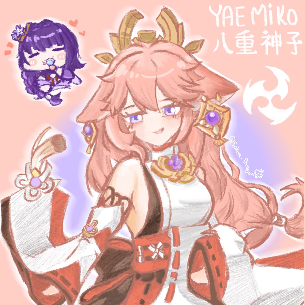 Yae Miko🦊and cute eating Ei😋 #GenshinImapct #genshinimpactfanart #yaemiko #eimiko #fanart #chubby