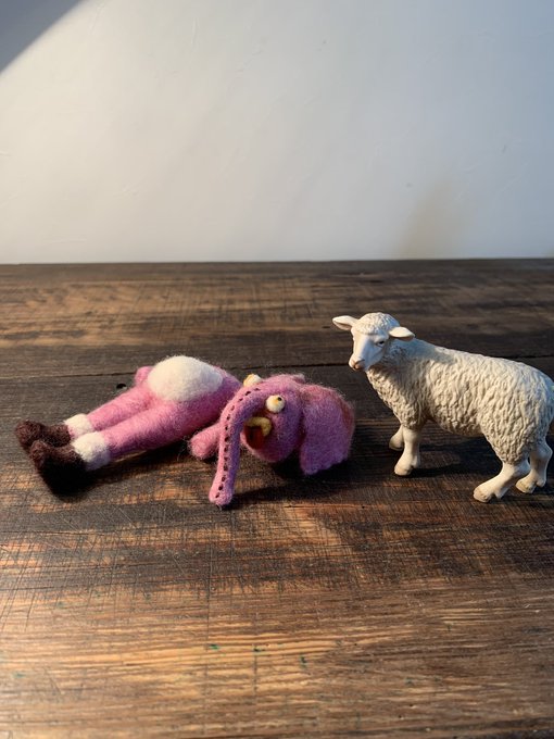 先日の制作以降、とっても愛着が湧いてきてしまい、ストラップつきの小さなぞうさんもつくってしまいました。 鼻ぺちんっっ🐘 (両足は揺れます。プランプラン♪) #DbD #Deadbydaylight #羊毛フェルト