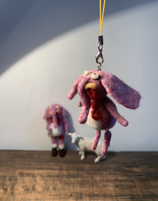 ゆっくりのんびりつくっていたら 完成が遅くなってしまったー。笑 ストラップを付けてみました。 この可愛い子は なんていう名前なんだろう。 #OneHandClapping #羊毛フェルト