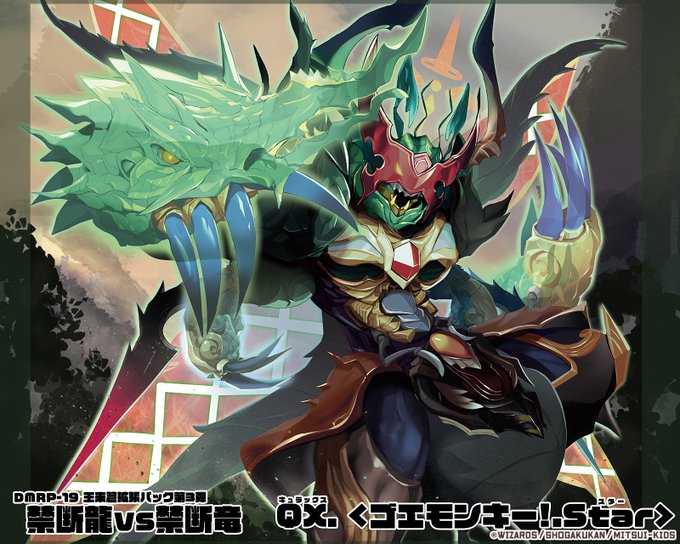 本日発売のデュエマ王来篇第3弾「禁断龍VS禁断竜」にて【QX. <ゴエモンキー!.Star>】さんを描かせて頂いております!QQQXさんべらぼうに格好いいので戦々恐々としながら描かせて頂きました。なにとぞ! #デュエル・マスターズ #デュエマ #デュエマ20th dm.takaratomy.co.jp/product/dmrp19/
