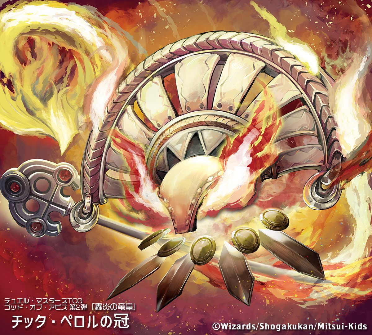 昨日に続きまして、本日発売のデュエマTCGゴッド・オブ・アビス第2弾「轟炎の竜皇」でも《チッタ・ペロルの冠》担当させて頂いております、プロモ版もあるらしいので何卒…! dm.takaratomy.co.jp/product/dm22rp… #デュエマ #デュエル・マスターズ