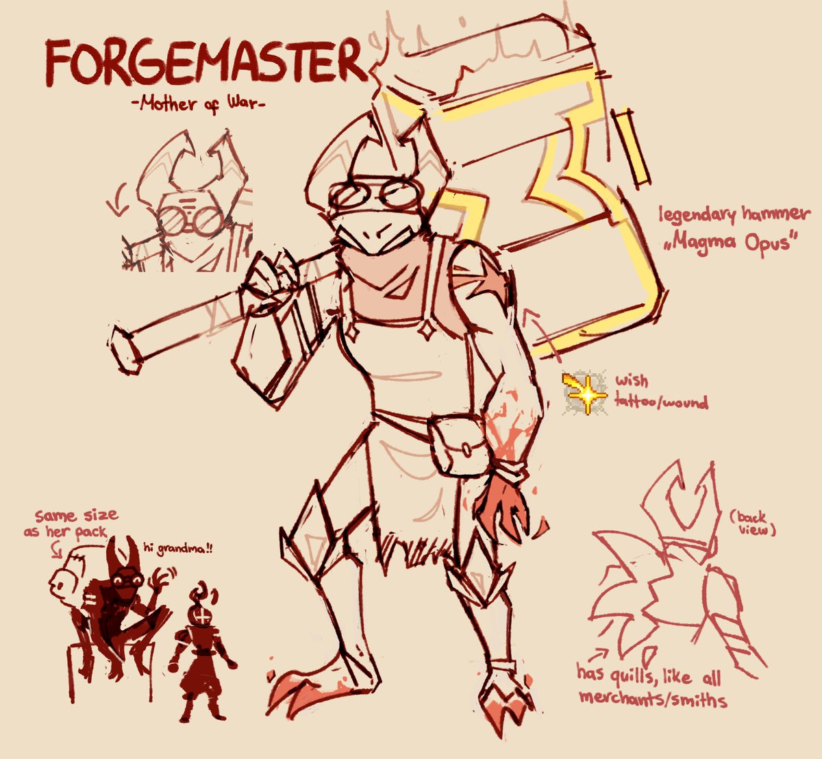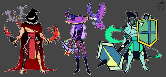 some more dead cells fan characters/concepts i made, this time based off of the 3 power scrolls (brutality , tactics, survival) if you play dead cells you might recognize parts of their design! (wink) #deadcells