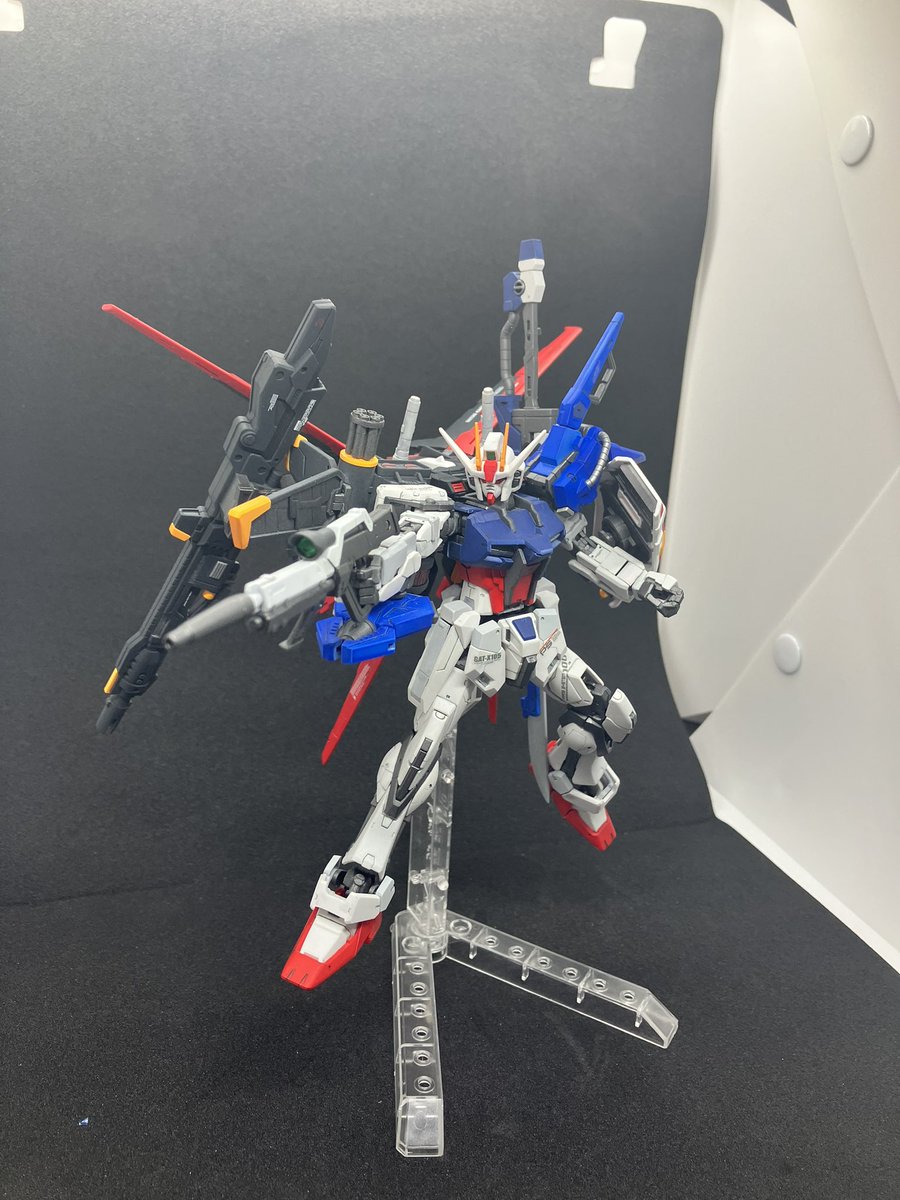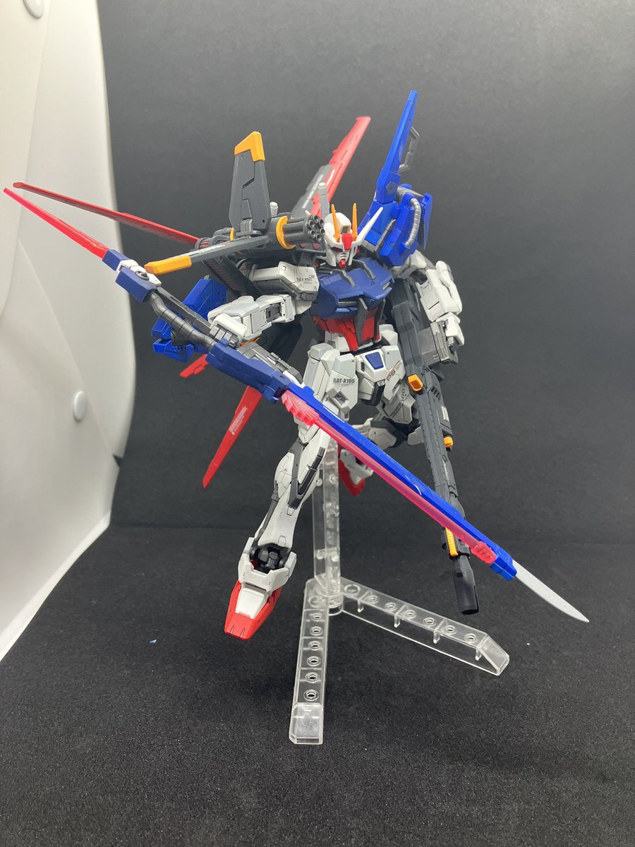 お疲れ様です。RGパーフェクトストライク完成しました。元々、本格的に簡単フィニッシュで作ってみた機体ですが、作り直してみました。カラーリングはアレンジ強めにして、結構気に入ってます。#ガンプラの画像を貼るとRTされると聞いて #ガンプラ好きと繋がりたい #ガンダムSEED