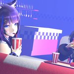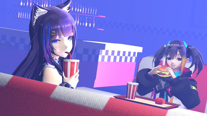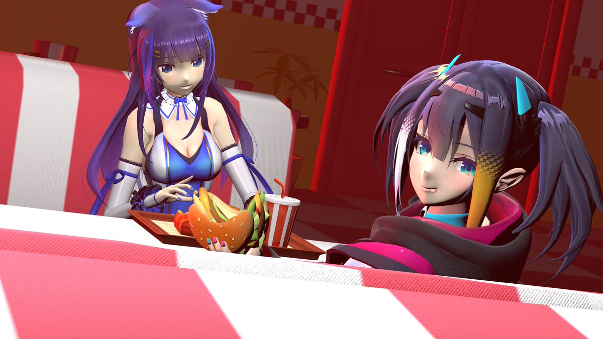 6 19 りんここinバーガーショップ #画狼伝説 #りんかぁと モデル 吉花こころ様 燐夏・ライゼンバイン様 アメリカンダイナー風ステージ:もき(moki)様 ファーストフードセット:キャベツ鉢様 多分このサイズはナイフとフォーク出してもらえると思う 23/04/09 06:32