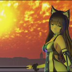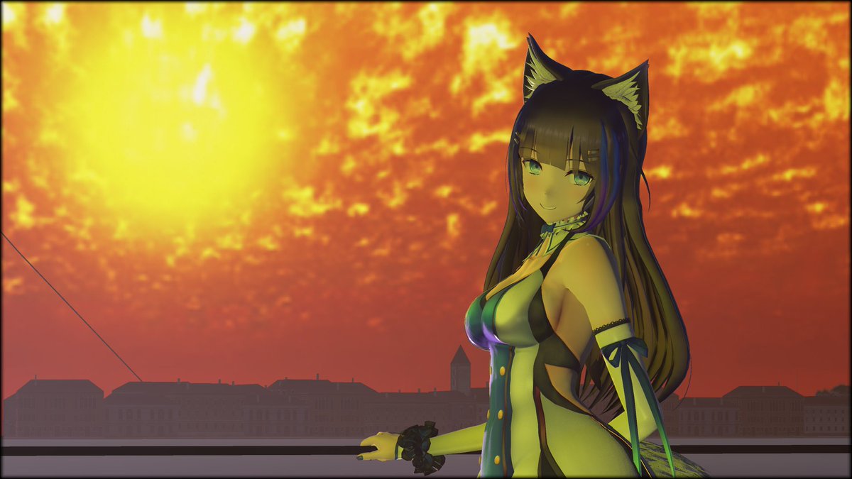 夕焼け河岸こころちゃん #画狼伝説 モデル:吉花こころ様 スキアヴォーニ河岸:シロ様 オレンジ色の夕焼け:怪獣対若大将P様 sdPBR:サンドマン様 のんびりと夕日が沈むまで眺めていたい