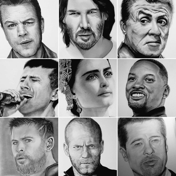 1 6 Joining the #faceyourart trend 🤩 #portrait #mattdamon #KeanuReeves #sylvesterstallone #hamzanamira #EsraBilgic #WillSmith #ChrisHemsworth #JasonStatham #bradPitt 20/08/03 23:00