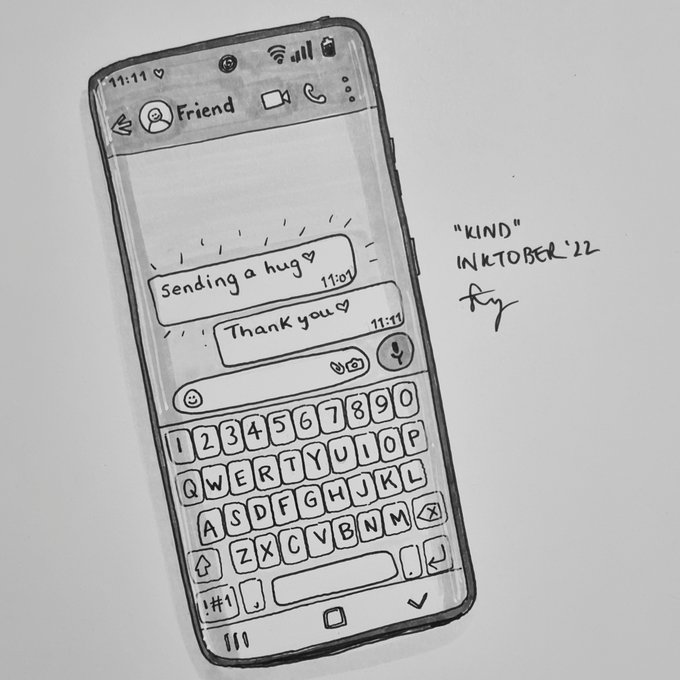 Had to do a very quick 10 min #inktober today before an evening meeting but I'm still doing it so 10 life points to me 😂 Today's word is "kind" which ties in nicely with world mental health day earlier in the week 🥰 Check in on your friends! #inktober2022 #kind