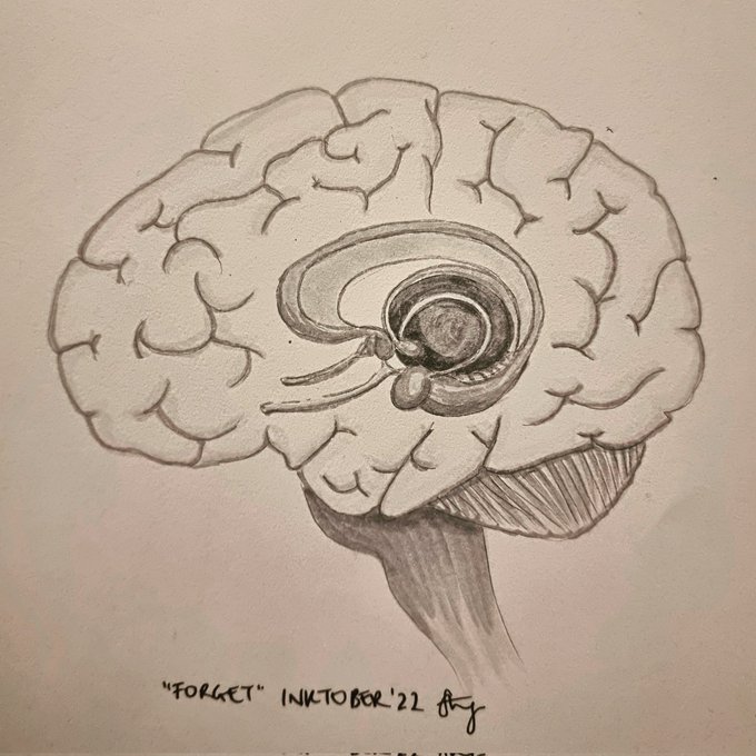 I didn't have a ton of time today for inktober so had to do a quick sketch (hence the copics instead of fineliners) but I thought it would be a full on crime if I didn't draw the limbic system for "forget" 😂🧠 #inktober #inktober2022 #inktober2022day12 #forget