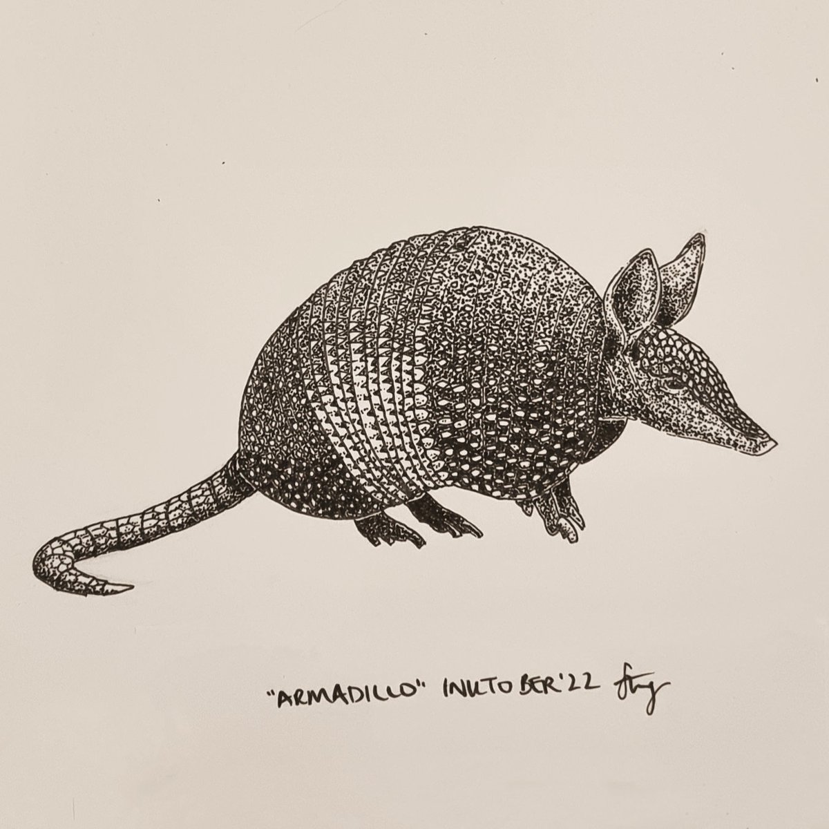 OK it's a day late but I had people staying over and it felt a bit rude to be doodling whilst they were here 🙈 Here is my dotty "armadillo" for inktober day 15 ✨️ #inktober #inktober2022