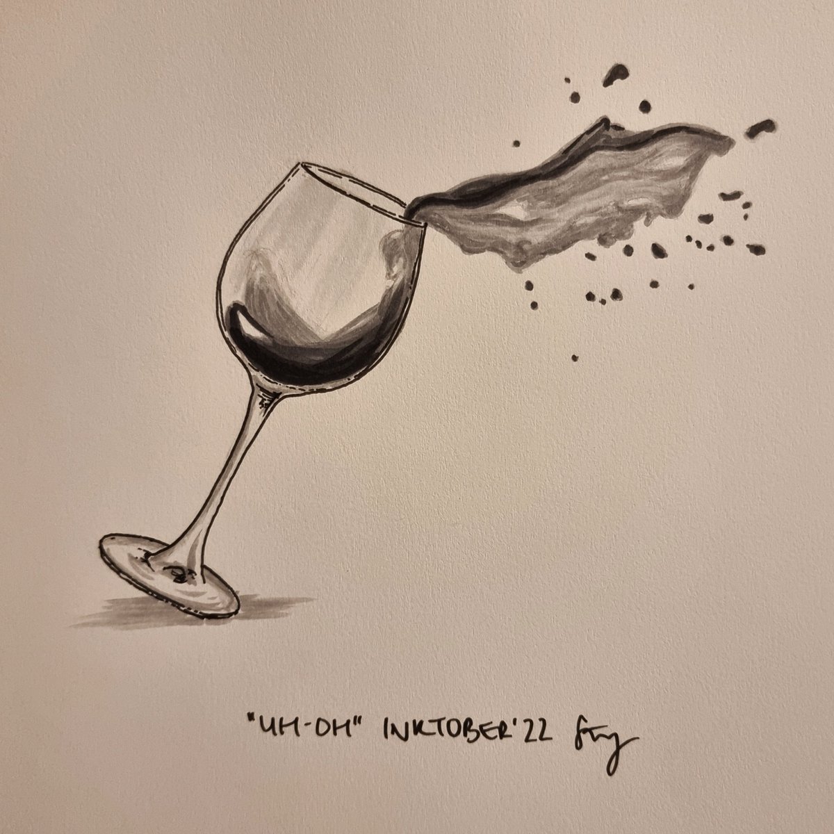 Today's inktober promot is "uh oh" so I attempted an action shot 🍷😵 #inktober #inktober2022 #inktober2022day29 #uhoh