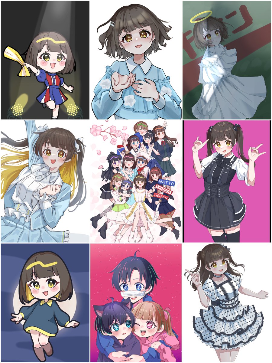 8 25 渡部、ゆりにゃ、kimono、へずま、ノック、さきぼん、ポケ、バーレスクのももちゃん、ぷぅさん、そして下にちらっとキヨミズを描きました〜꧁꧂ キヨミズは全体の顔こんな感じです✌️ (紙吹雪はあの色です1枚違う色あるけど) 23/08/12 22:38