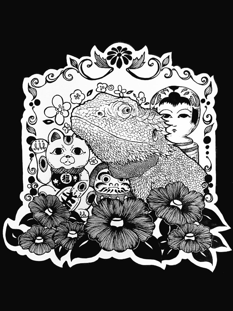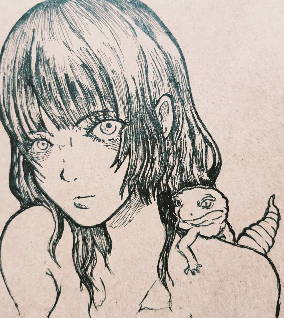 フトアゴヒゲトカゲ🦎 今回の絵はモノクロで仕上げました✏️ #爬虫類 #イラスト #illustration #フトアゴヒゲトカゲ #アナログイラスト #ペン画 #爬虫類好きな人と繋がりたい