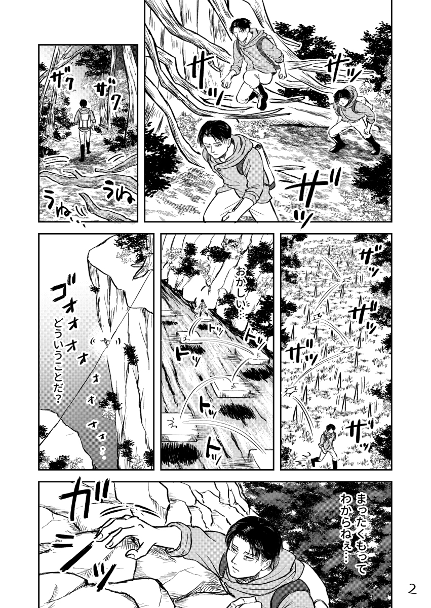 以前web再録した「おいでよ!ヘイチョウの村」(pixiv.net/artworks/95003…)の作中で描ききれなかった、ダンチョウの村にたどり着くリヴァイさんの話です。 (1/5)