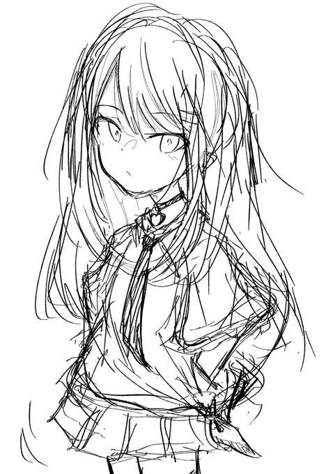 10 33 #100日チャレンジ #みかじ絵 12日目 桐生ココ 勉強しないといけないので今日もラフのみで… 23/06/27 22:13