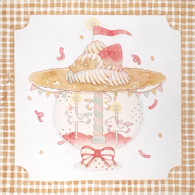 🍓🎠『merry-go-round』 透明水彩、色鉛筆 #watercolor #illustration