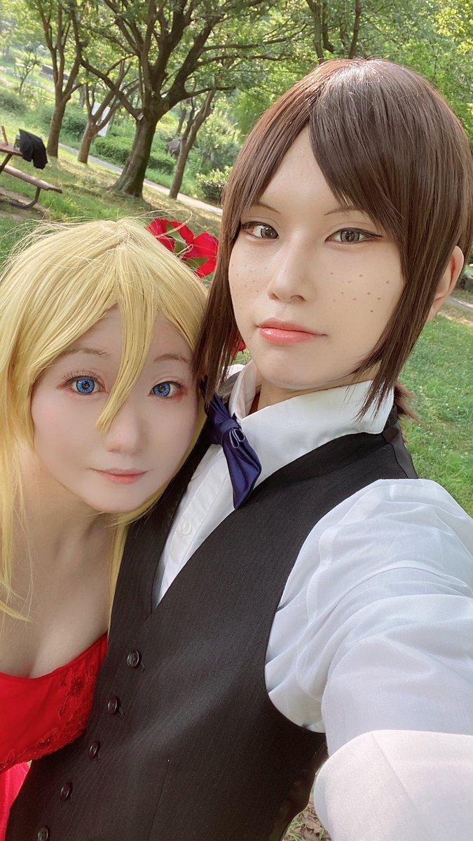⚠︎Cosplay/スマボ ジューンブライド なすくま(概念) これは完全に捏造をひた走る彩と付き合ってくれるくまちゃん。 黒髪のお姉さんと、ジャケットとは、ラコロール さんのスタッフさんです、感謝しかない。 #ラコロール #ラコロール鶴見ノ森迎賓館