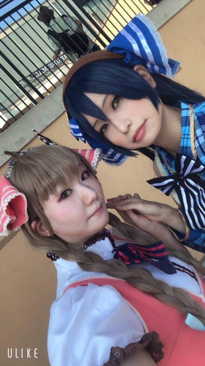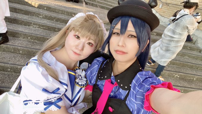 こちらはおそくほ、着替え後😊 それぞれバラバラだけど、私は念願のスターライトセーラー\\\\٩( 'ω' )و //// 併せは望めないと思うから気納めかなー。 ちなみにとさかは海未風に煽られました( #アコスタ岸和田カンカン