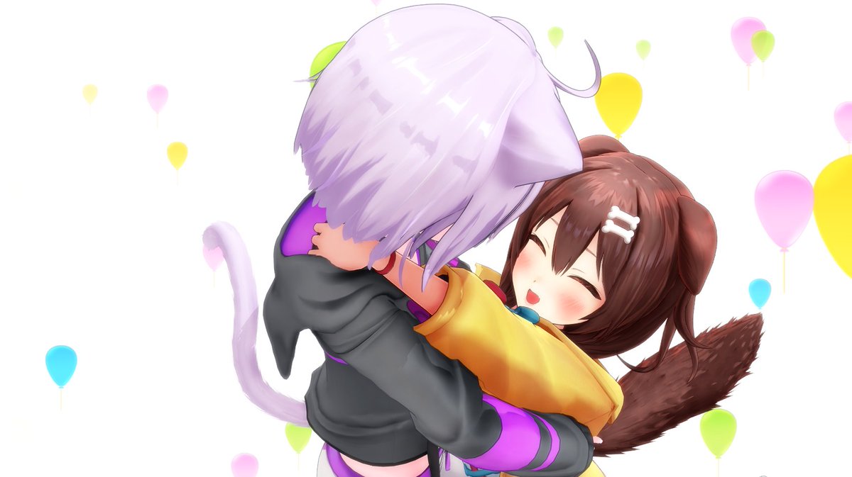 寒くなってきたのでおかころてぇてぇ… ©2019 cover corp. #猫又おかゆ #戌神ころね #絵かゆ #できたてころね