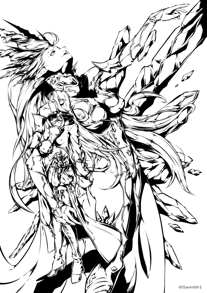 B/W versions of some recent posts #FF14 #FinalFantasyXIV #yugioh #YuGiOhTCG #MHRise #MonsterHunter #artistsontwitter