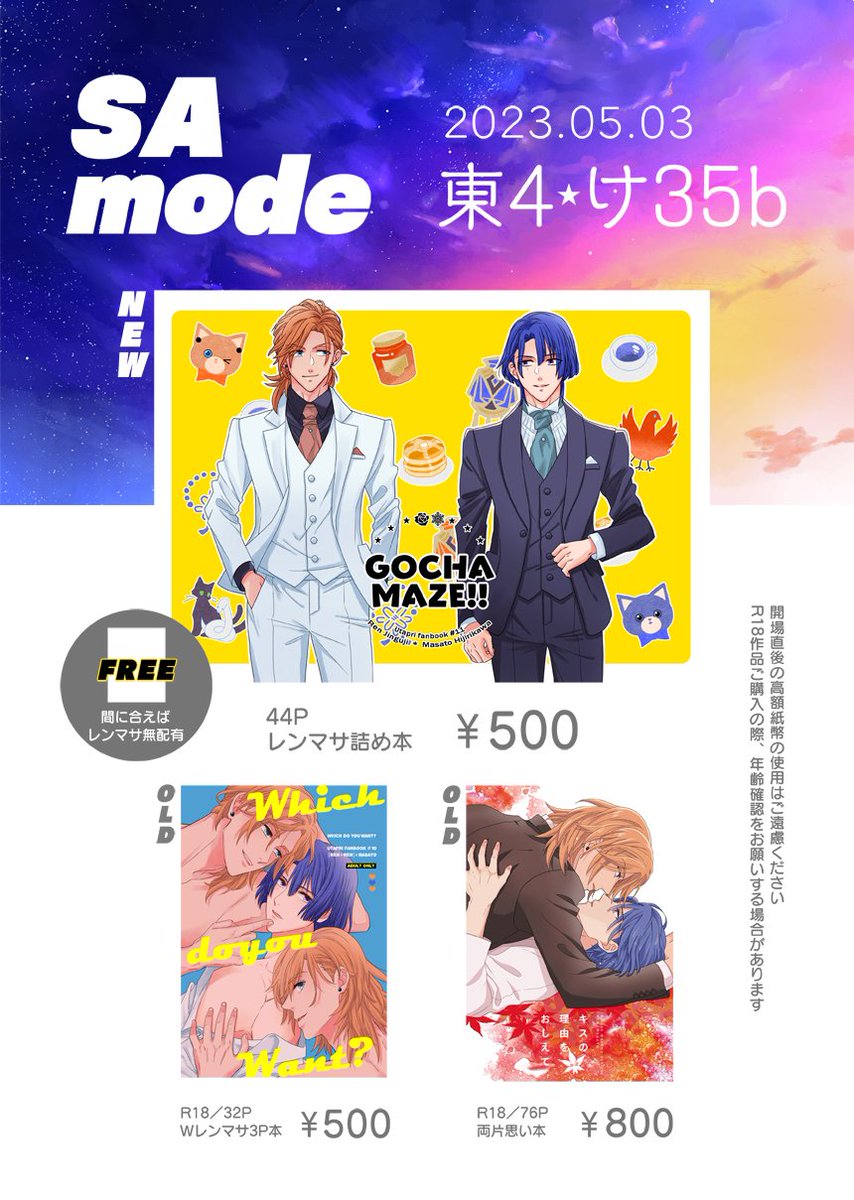 5/3(水) 超プリ★コン 📝お品書き 東4 け35b/SA-mode 新刊 いろんなレンマサ🌹❄️詰め合わせ本 サンプル:pixiv.net/artworks/10757… 通販:ec.toranoana.jp/joshi_r/ec/ite… 間に合えばレンマサ漫画(4ページ) の無配があります。 よろしくお願いします!