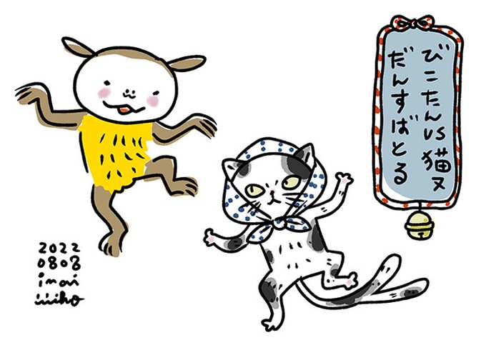7 22 #世界猫の日 だそうなので。 #びこたん誕生日 #妖怪 #やまびこ #猫又 22/08/08 14:55