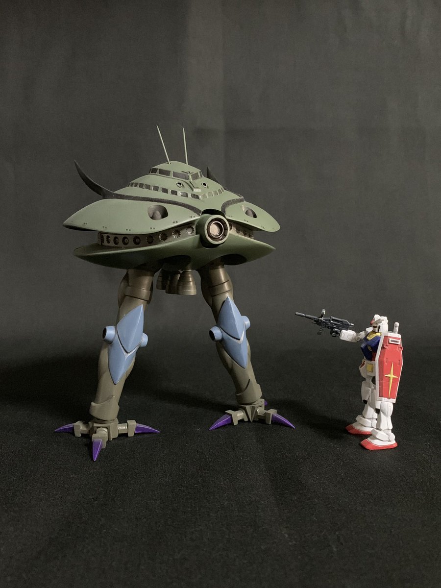 5 56 1/550のビグ・ザムです。比較用にカップヌードルのガンダム?を並べてみました。スケールは、1/380(謎)です。すこし大きかったかな。ビグ・ザムの特徴を捉えた良いキットだと思います。 #ガンプラ #旧キット 19/08/27 00:27