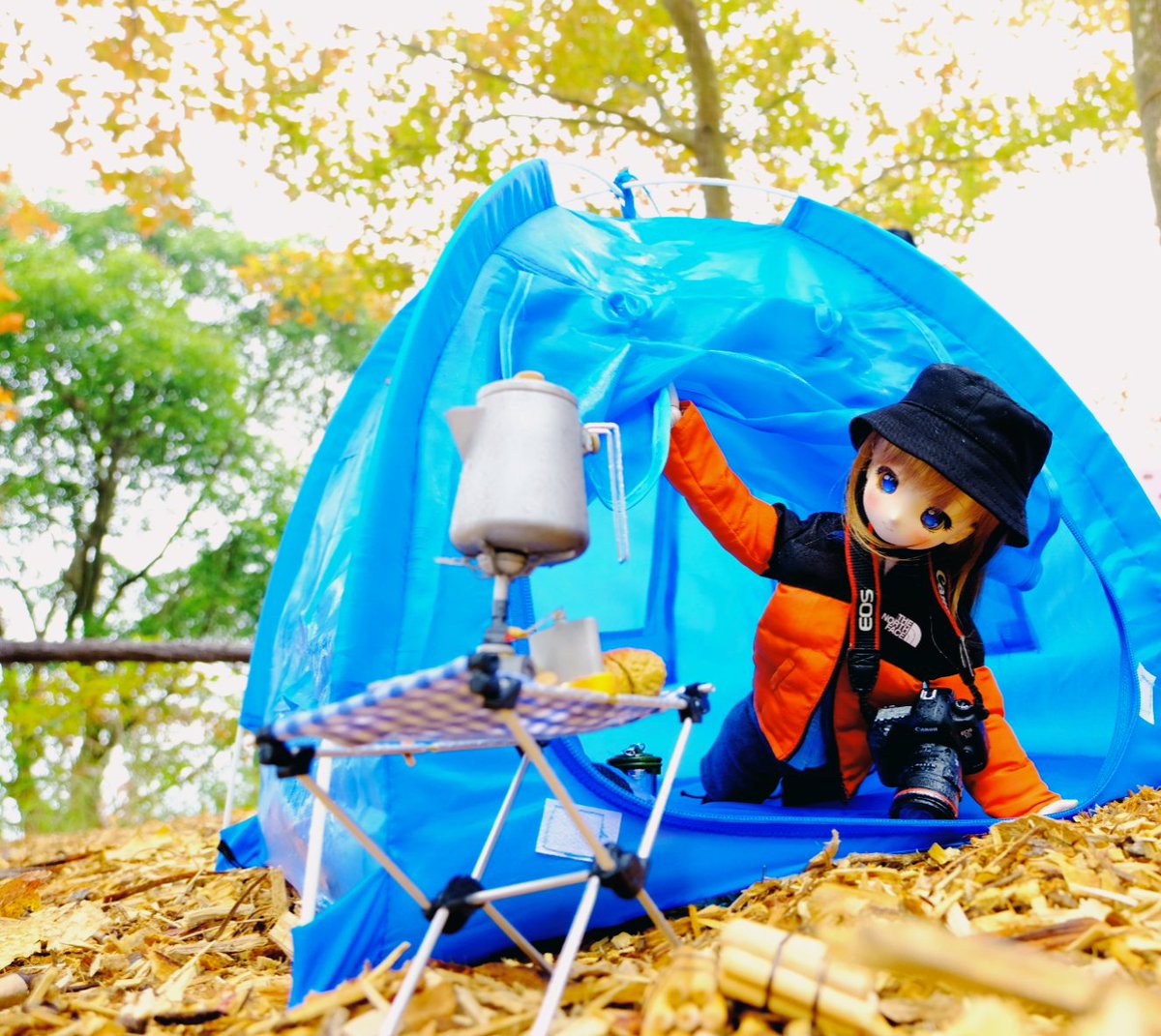 香港 の紅葉は最後の チャンス見る Soraちゃんキャンプします。 #うちのこかわいい #よそのこかわいい #MDDはいいぞ #ドール野外撮影いいぞ