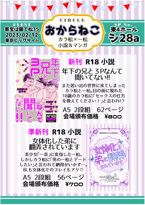 #おれからいちいち言わせんな2 スペースいただきました! 💜4エリア、う4「おからねこ」です。 pictsquare.net/hcgpo4ylw3tb47… #おれいち2 はカラいちwebオンリーで、開催日は2023年2月4日の22時からです。 よろしくお願いします!! 何が出るかな〜(まだこれから頑張る!)