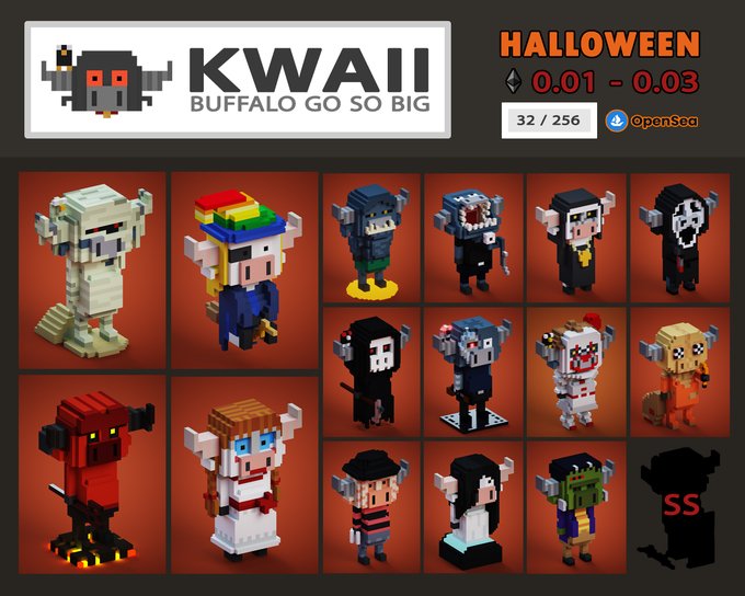 ‼️🎃HALLOWEEN PARTY🎃‼️ ------KWAII ------- 🐃BUFFALO GO SO BIG🐃 👻watch your back carefully👻 opensea.io/collection/kwa… Each KWAII includes a 3D model (.obj), an avatar (900x1200px) and a .vox file #NFTThaicommunity #voxel #voxelart #TheSandbox #Metaverse