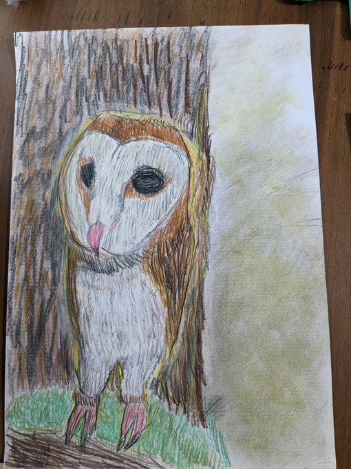 背景が難しくて苦しむ #小学6年生 息子が新たに挑戦❣ 3時間かけて宿題そっちのけで描いた #色鉛筆画 です🦜 四ツ切画用紙に八ツ切画用紙のサイズで描いたと泣きそうになっていたのでカット(笑) コンクールに出したいと話してまして(この調子で納得できましたら出させて下さい♥)🖼 twitter.com/cocopipi55/s…