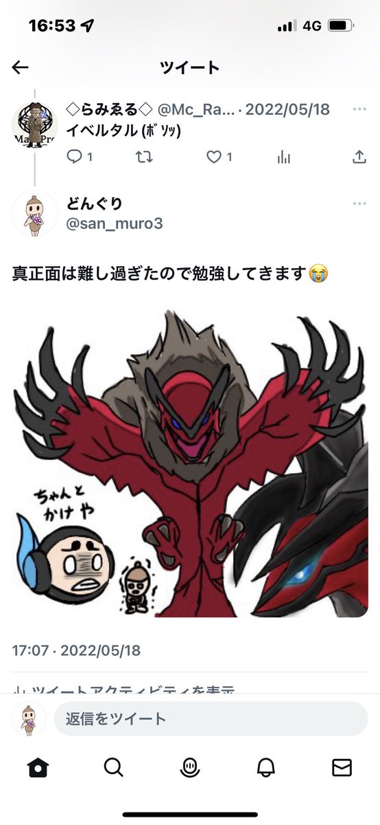 と言う事で以前頂いたリクですが 構図が全く思い浮かばず…こんなに間が開いてしまい😣 まだまだ技術不足でしかも1年越しですが… でもとても楽しかったです! #イラスト #ポケモン #イベルタル #Pokemon #illustration twitter.com/san_muro3/stat…