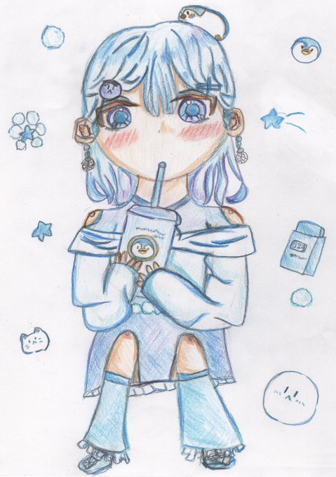 学校の休み時間に描いてみました🤍🐦🫧 #アナログ絵描きさんと繋がりたい #アナログイラスト #ペンギン