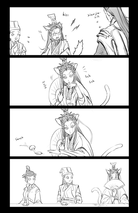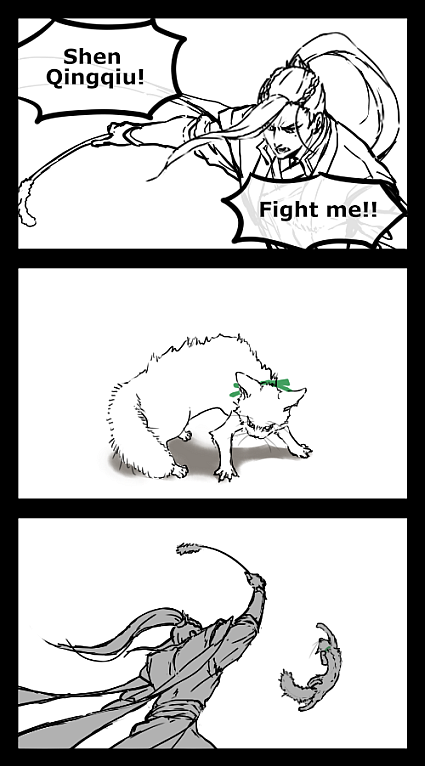 Liu shidi came to Nyan-Jiu rescue!🐱 But they were so engrossed in the fight that Gōngyí Xiāo sent Nyan-Jiu to Cāng Qióng Mountain while they were there.🐈 (Thank you again and again for your great ideas!🐾) twitter.com/quelmdn/status…