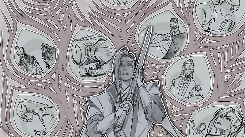 Nyan-Jiu thought Qi-ge had invited him to tea, but then he realized the destination was Mu Qingfang's peak.😾 twitter.com/TeaTaeArts/sta…