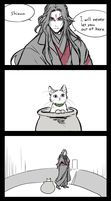 Every time Luo Binghe goes in and out of the water prison, he has trouble stopping Nyan-Jiu from escaping.🐱 (Thank you for the great idea!) twitter.com/Phantom_248/st…