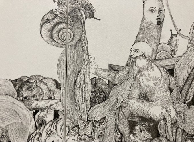 まだ先なんですけど力尽きてないうちにツイートします BE=Lab&Galleryさんで個展をさせていただくことになりました 坂井奈央 個展 「不遜一派 」 2022.9/14(水)-9/25(日)月・火休廊 13:00-19:00(最終日18:00まで) BE=Lab&Gallery 〒540-0039 大阪市中央区東高麗橋2-28 コジマビル2階 #ペン画