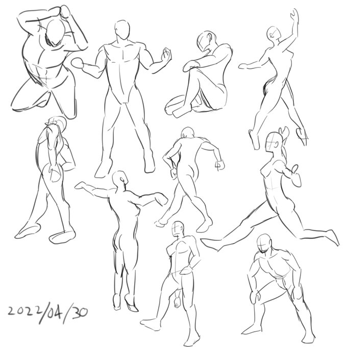 0 2 #PoseOfTheDay 60秒ドローイング7日目 22/04/30 08:51